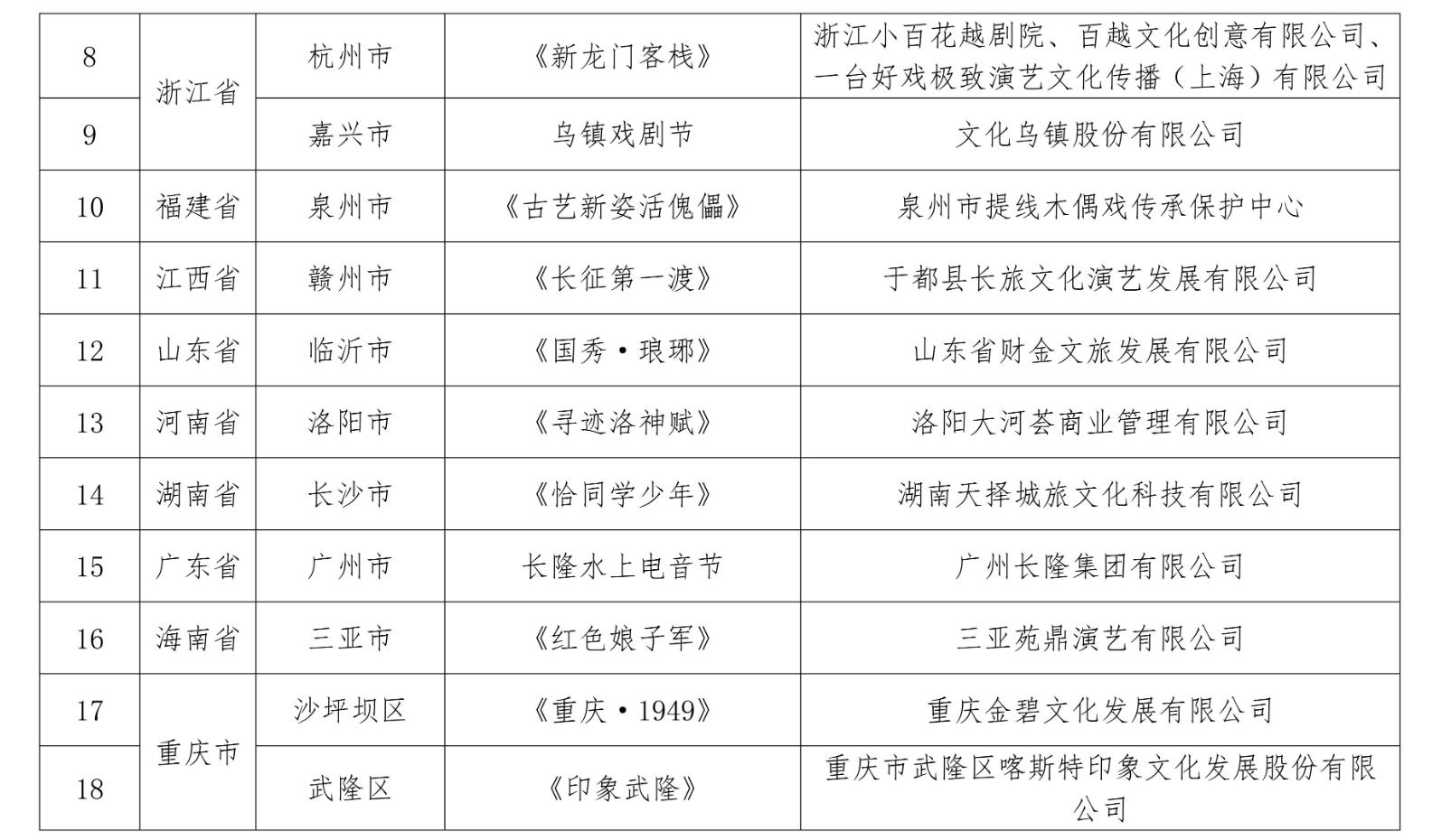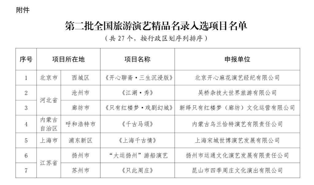 2026年1月15日,文化和旅游部发布通知,公布第二批全国旅游演艺精品名录入选项目,名单如下: